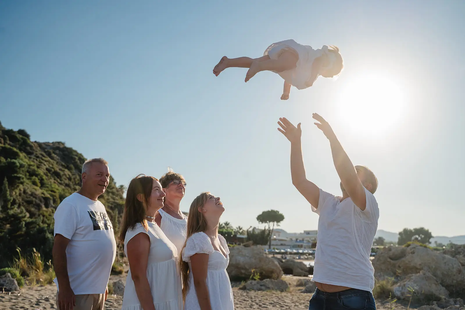 Rhodes is the perfect backdrop for authentic, emotional family portraits – with its crystal-clear waters, golden beaches, charming villages, and historic streets. Whether you’re enjoying a family holiday or living on the island, a family photoshoot is the perfect way to preserve real moments of love, laughter, and connection.